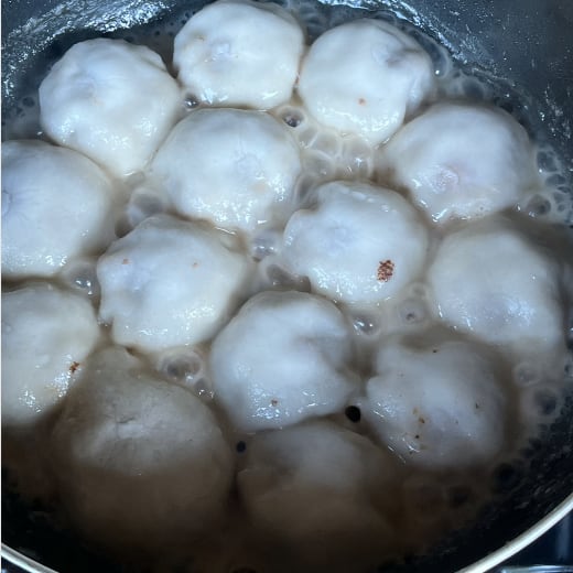 ②水を小籠包の1 /2浸かるくらい入れ、ふたをして強火で沸騰してから約8分蒸し上げます。